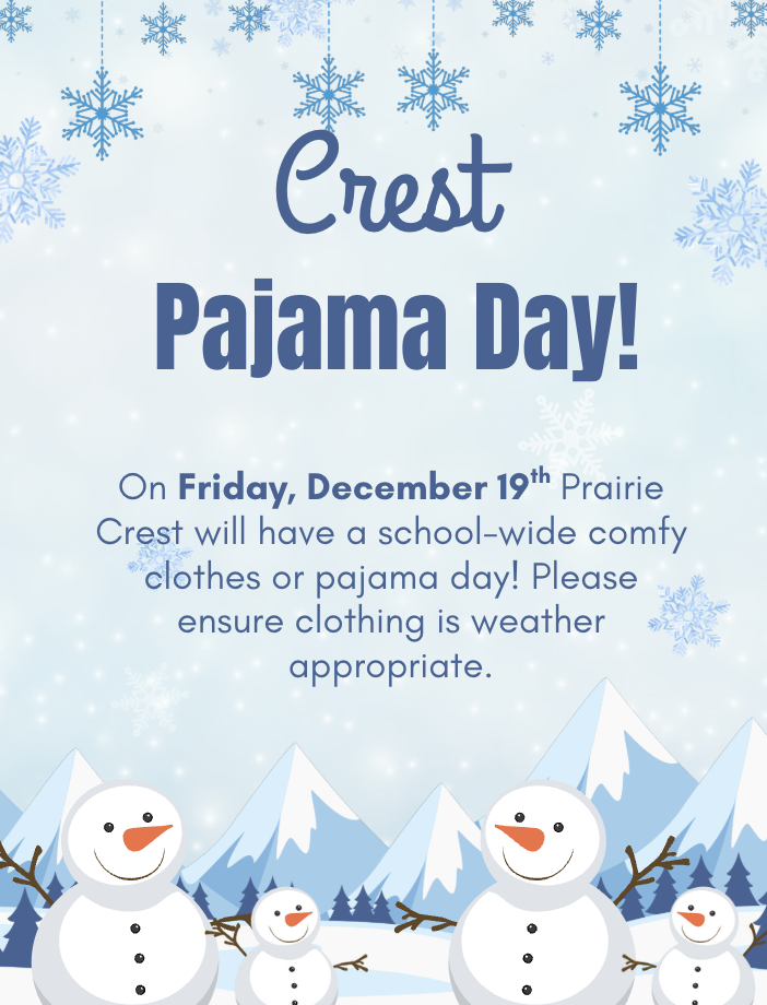 To celebrate the day before winter break we will be having a school-wide PJ day on Friday, December 19th!